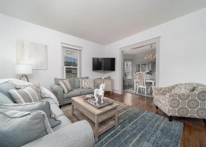 Cet établissement Relax At This Charming And Cozy Downtown Retreat dispose d'un patio et d'un coin salon, ainsi que d'un équipement de repassage pour un séjour confortable. Vous pourrez également bénéficier d'Internet à haut débit et d'une TV. Dotée de toilettes séparées et d'une baignoire, la salle de bains est également équipée d'un sèche-cheveux et des draps de bain.